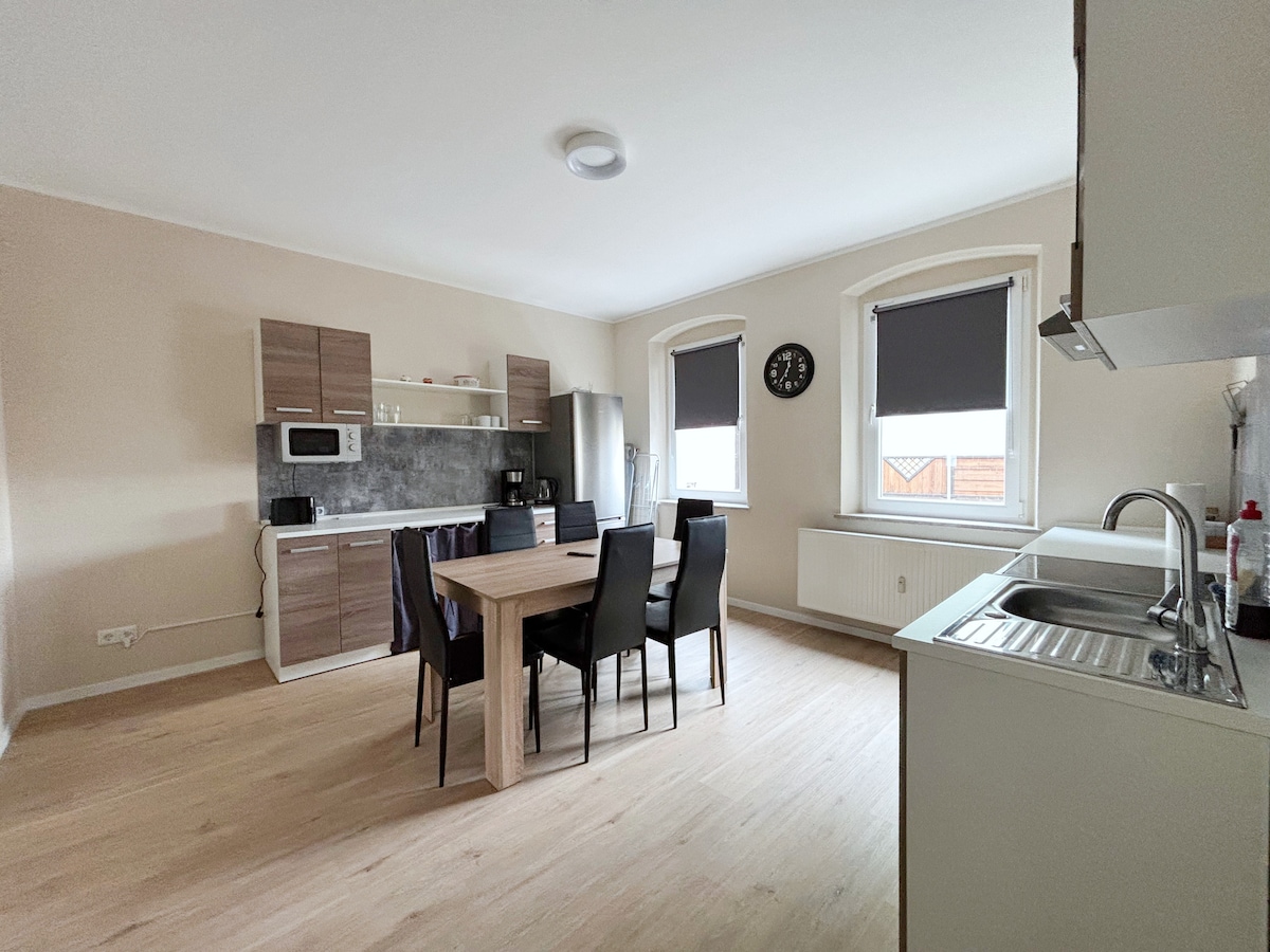 Gemütliche 2-Zimmer Wohnung in Zentrumsnähe. Supermarkt, kleiner Kiosk, Eisdiele und Krankenhaus um die Ecke. Öffentliche Verkehrsmittel 5 bis 10 Minuten zu Fuß entfernt. Plauener Innenstadt in 10 bis 15 Minuten fußläufig erreichbar. Wir bieten eine voll eingerichtete Wohnung, die perfekt für Kurztrips oder auch Langzeitaufenthalte geeignet ist. Auch Familen sind bei uns immer willkommen, auf Anfrage gibt es auch ein Babyreisebett. Gerne heißen wir auch internationale Gäste willkommen.