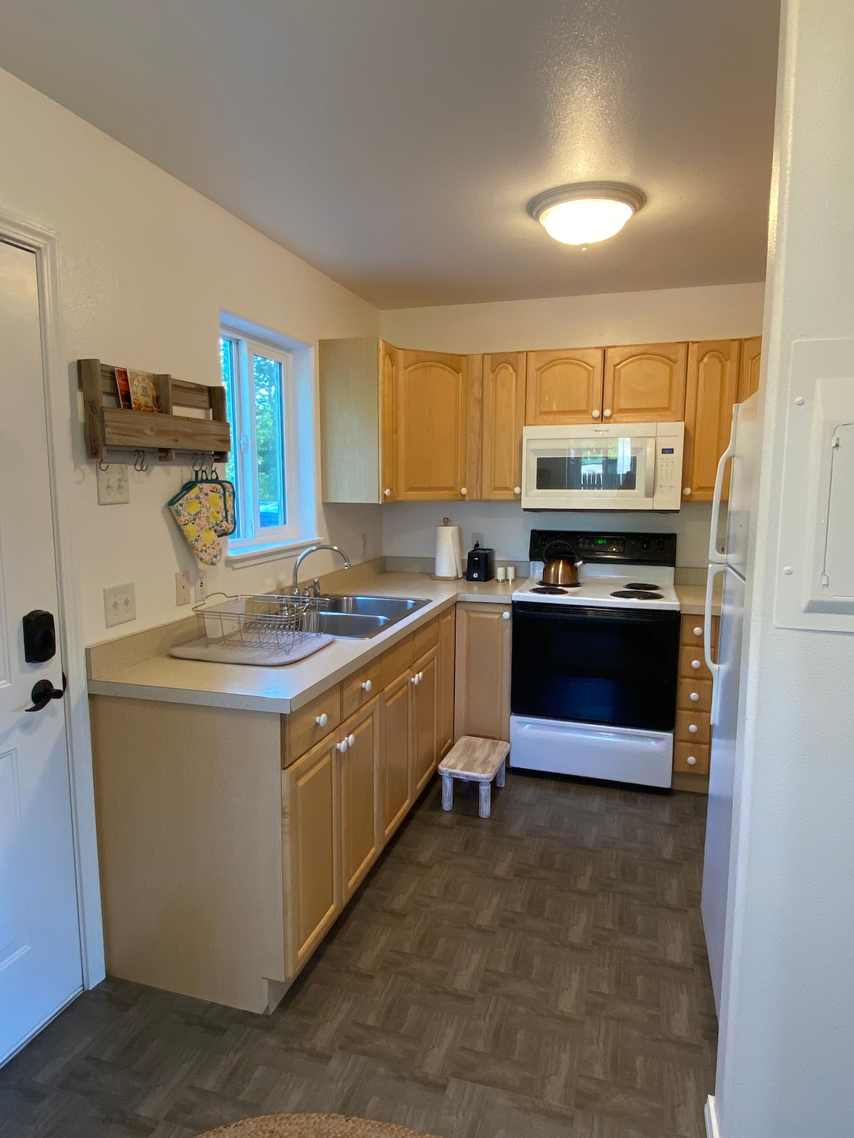 Private Gästesuite in einer ländlichen Wohnsiedlung am Fuße des Hatcher Pass. Im Inneren befindet sich eine stilvolle und gemütliche Gästesuite mit einem Schlafzimmer und einer voll ausgestatteten Küche, die mit Kunst und Waren von lokalen Künstlern und Handwerkern ausgestattet ist. Draußen findest du eine Terrasse mit einer rauchlosen Feuerstelle und einem Hühnerstall. Im Winter bist du in der Nähe des Hatcher Pass, des Skigebiets Skeetawk und aller Winterfreizeitmöglichkeiten in der Umgebung.