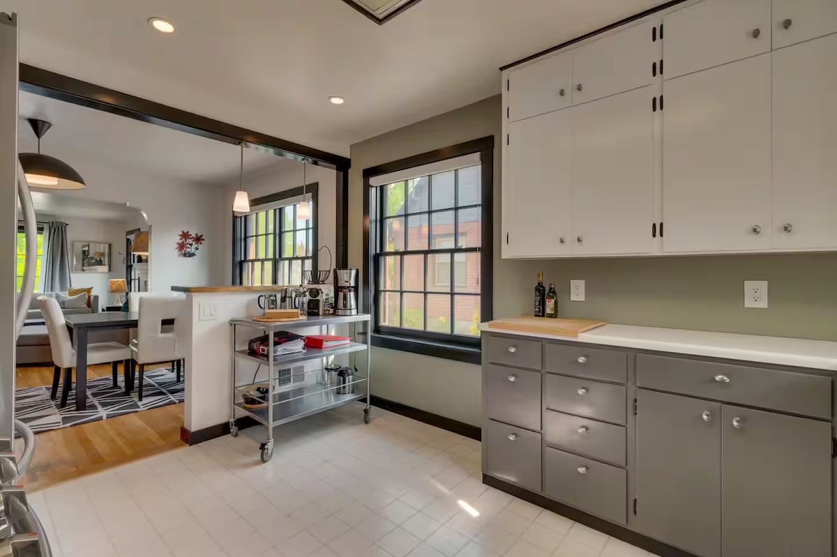 Ein charmanter 1940er Backstein-Duplex, modernisiert für modernes Wohnen in Renos Wells Avenue-Viertel mit Hof, Bergblick, hübschem Garten und Parkplätzen abseits der Straße. Das malerische 1-Bett-Zimmer verfügt über ein Queensize-Bett, WLAN, einen Arbeitsbereich und einen 80-Zoll-Projektor mit HD-Display und Bose-Lautsprecher für ein filmreifes Erlebnis. Wir haben das gesamte Interieur renoviert – neue Sanitäranlagen, Elektrik, Küche und Bad. Das Ergebnis ist ein strahlend weißes, modernes Ein-Zimmer-Apartment, das alles bietet, was du für einen erholsamen Urlaub im Herzen von Reno brauchst.