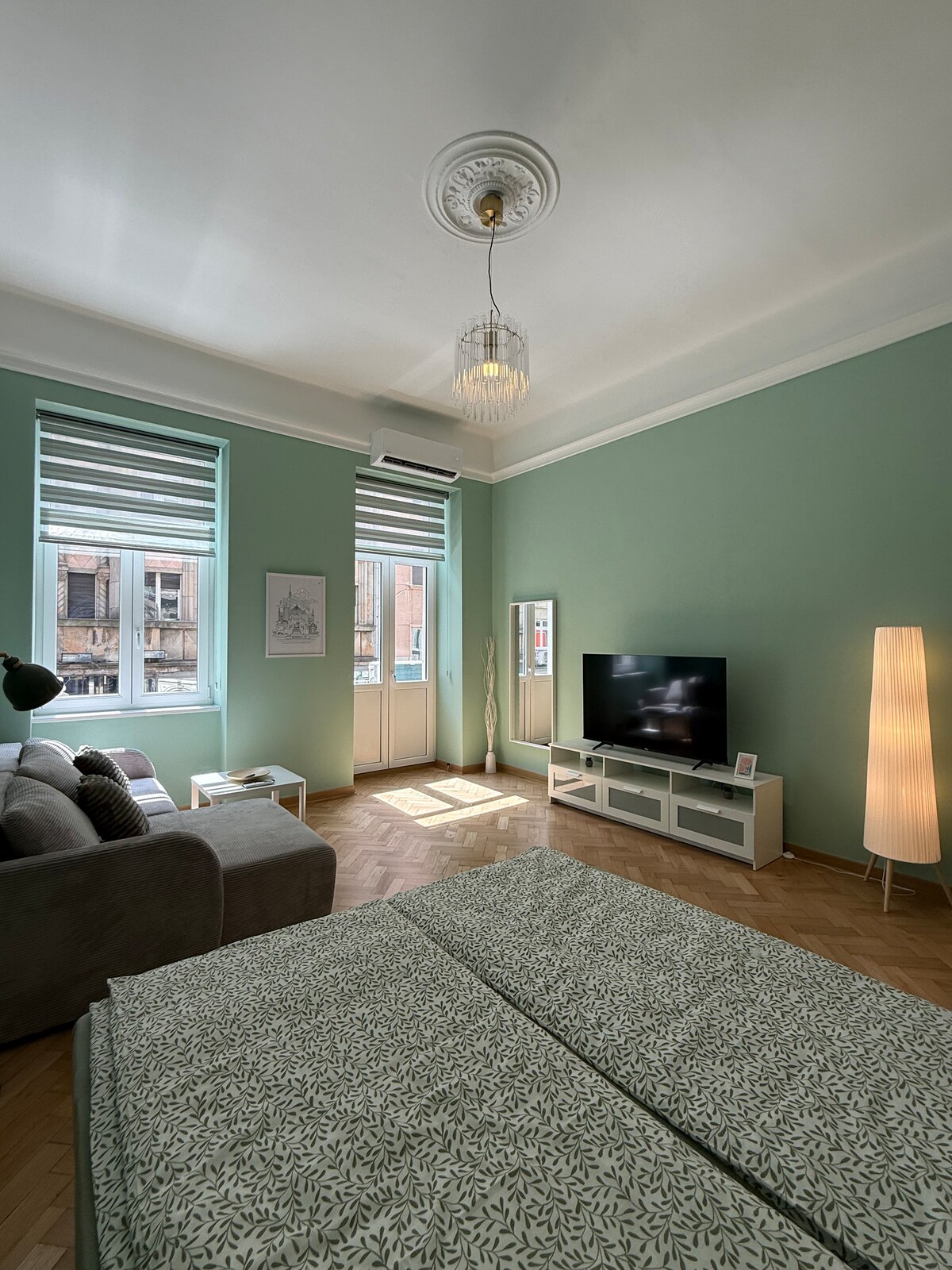 Die exklusiven „City Garden Apartments“ befinden sich in der Hauptfußgängerzone und verfügen über zwei identische Luxuseinheiten von jeweils 60 m² (blaue und grüne Wohnung) mit einer authentischen Kombination aus modernem und Retro-Design und einem erstaunlichen eingezäunten Garten. Ruhiger Ort & magische Atmosphäre. Die Wohnungen sind komplett ausgestattet, um den höchsten Premium-Standards zu entsprechen. Aufgrund der perfekten Lage sind alle wichtigen Sehenswürdigkeiten, das Nachtleben, Einkaufsmöglichkeiten, Geldautomaten, Restaurants, Märkte, Flüsse und die Fußgängerzone nur eine Minute zu Fuß von den Apartments entfernt!