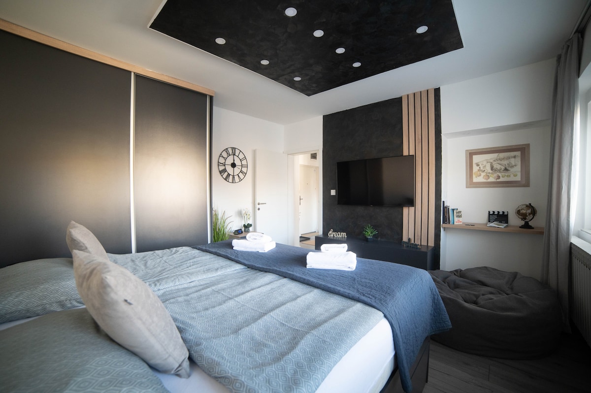 Entspanne dich in dieser geräumigen Wohnung mit einem Schlafzimmer unter den Bergen von Sarajevo. Es liegt ganz in der Nähe des Flughafens und ist über schnelle Routen und öffentliche Verkehrsmittel mit dem Stadtzentrum verbunden. Bei einer kurzen 10-minütigen Fahrt findest du dich am schönen Trebevic Mountain, sowie am Bjelasnica und Igman, sowie am Bjelasnica und Igman. Das Wohnzimmer ist mit einer ausziehbaren und einer regulären Couch ausgestattet, die am besten für bis zu 3 Gäste geeignet sind. Genieße deinen Morgen auf dem entspannenden Balkon mit einer angenehmen Aussicht.