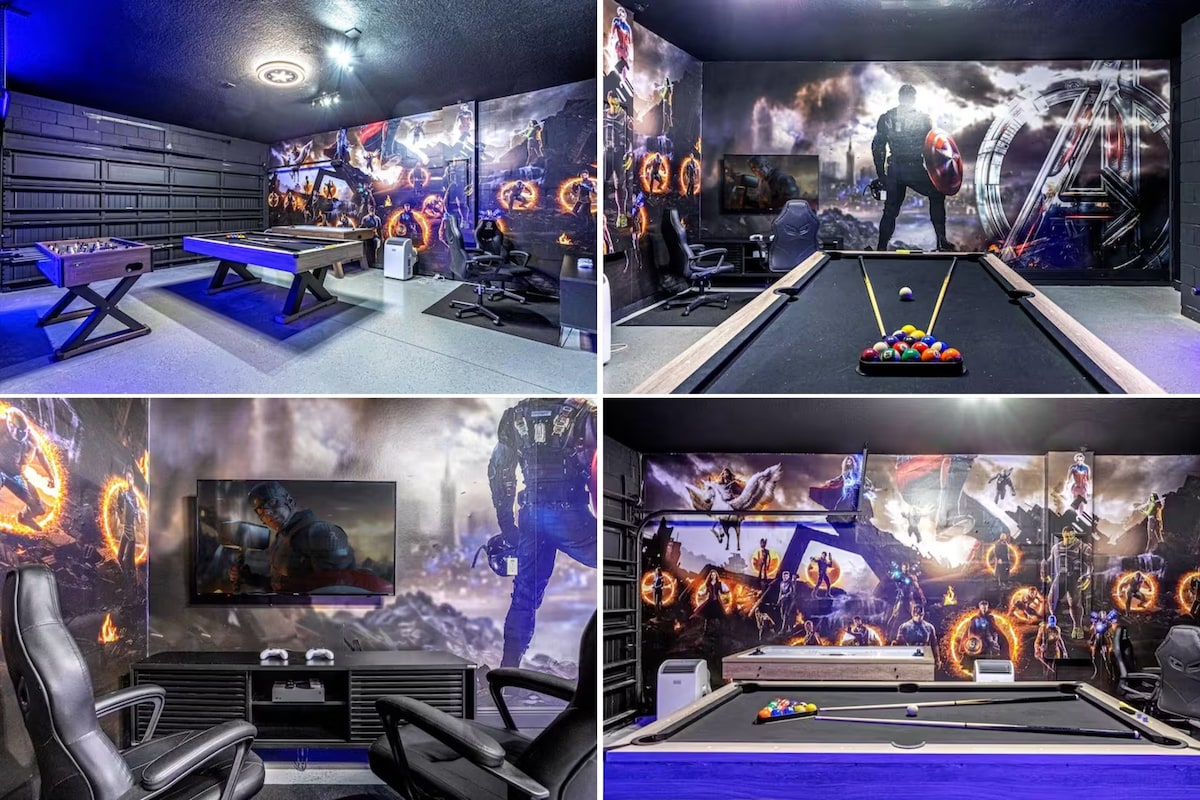 ☆ IMMERSIVES Spielzimmer mit Mario-Motto ☆ EPISCHES Avengers-Schlafzimmer mit individuellem Design ☆ EPISCHES Moana-Schlafzimmer mit individuellem Design ☆ Privater beheizter Pool und Spa Blick auf den ☆ Golfplatz ☆ Voll ausgestattete Küche und Kaffeebar ☆ Ultra-komfortable Betten ☆ 2 luxuriöse Kingsize-Suiten + 1 Queensize-Suite ☆ Popcorn-Maker mit Vorräten ☆ Zugang zu exklusiven Restaurants. ☆ Nur wenige Minuten zu Disney World und Universal Studios