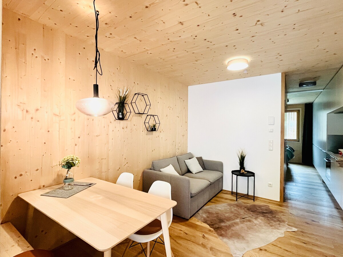 Stilvoll. Ruhig. Perfekt für aktive Wintertage. Dieses moderne Boutique Apartment ist ideal für sportlich aktive Paare. Skifahren, Langlaufen oder Winterwandern am Tag – abends entspannt ihr in ruhiger Atmosphäre, kocht gemeinsam oder lasst den Tag gemütlich ausklingen. Dank der Lage am Ortsrand von Mellau erreicht ihr Bergbahnen und Winteraktivitäten in wenigen Minuten und genießt danach euren persönlichen Rückzugsort im Bregenzerwald.