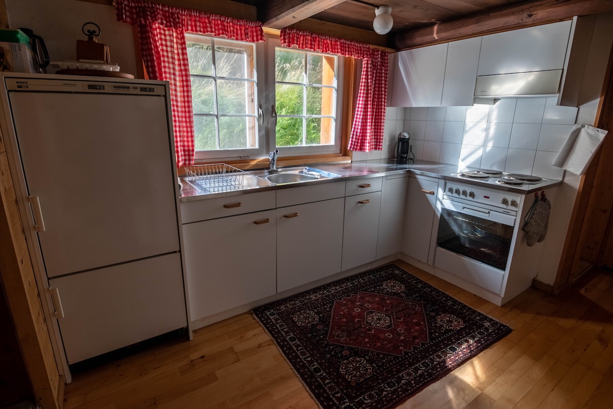 Das rund 400 Jahre alte Bauernhaus, das auf knapp 700 m.ü. Meer liegt, wurde 2019 Teilrenoviert. Dabei wurde gekonnt die rustikale Basis mit modernen Elementen kombiniert. Das Haus ist optimal für den Familienurlaub bis 6 Personen eingerichtet. Natürlich sind auch Gruppen, Paare und Einzelpersonen herzlich willkommen. Das Haus besticht mit einem grosszügigen Umschwung welcher sehr naturnah gehalten wird. Für Kinder sind im und ums Haus diverse Spielmöglichkeiten vorhanden.