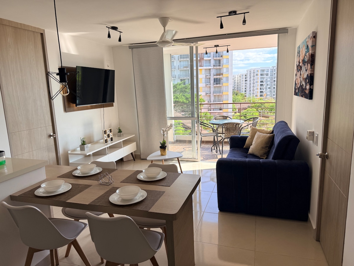 ✨ Crea momentos únicos e inolvidables en apto diseñado para que te sientas como en casa !! 🏡 Bienvenidos a este acogedor apto, un espacio perfecto que te permite disfrutar con familia y/o amigos, su ubicación estratégica por su clima cálido y su cercanía a lugares de interés, es el punto de partida ideal, ya sea que busques relajarte y descansar ó aventurar en los alrededores. 🙌🏻 Estamos comprometidos en hacer de tu estadia una experiencia única que te permita crear momentos inolvidables !