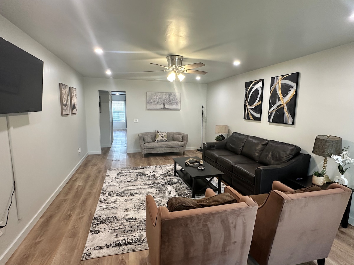 Willkommen im Bellini House, wo moderner Luxus auf gemütlichen Komfort trifft! Unser komplett renoviertes Haus ist mit allem Notwendigen ausgestattet, um einen komfortablen und unvergesslichen Aufenthalt zu gewährleisten. Entspanne dich bei einem Drink am Kamin oder entspanne dich auf einem unserer Plüsch-Memory-Schaum-Betten! Der offene Grundriss ist perfekt geeignet für Familien oder eine Gruppe von Freunden. Das stilvolle und luxuriöse Dekor wird dich anziehen und du wirst nicht mehr gehen wollen!