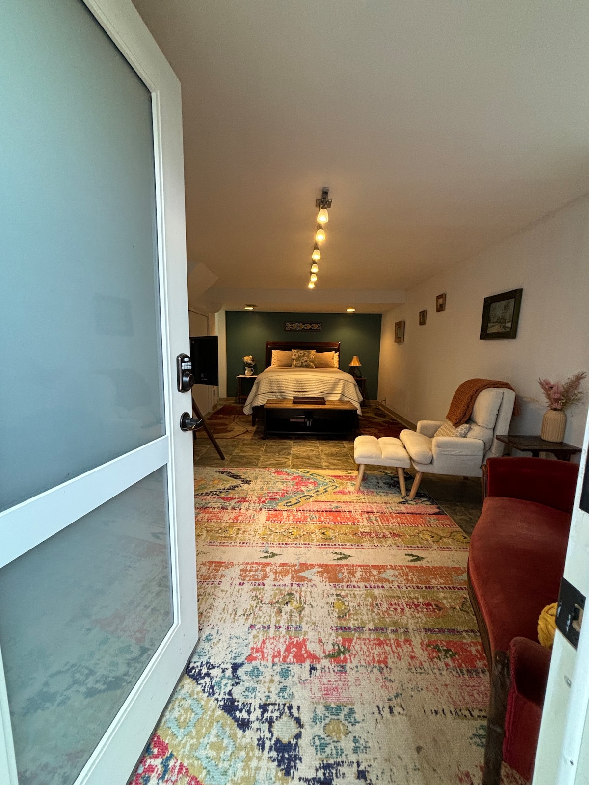 Ein Schlafzimmer, Queensize-Bett, Luftmatratzen verfügbar, komplettes Badezimmer mit Dusche. Parken vor dem Laden. Küche: großer Kühlschrank, Mikrowelle, Toaster und Keurig. Durchgehend Betonböden, haustierfreundlich. Max. 4 Gäste ohne Genehmigung. Wohnmobil-Stecker mit Durchfahr-Parkplatz vorhanden. Alle nicht registrierten Gäste, die sich nach 23:00 Uhr in der Unterkunft aufhalten, werden als zusätzliche Bewohner berechnet. KEINE UNBEFUGTEN PARTEIEN ERLAUBT. Du wirst aufgefordert, die Unterkunft zu verlassen, und eine Veranstaltungsgebühr wird erhoben.