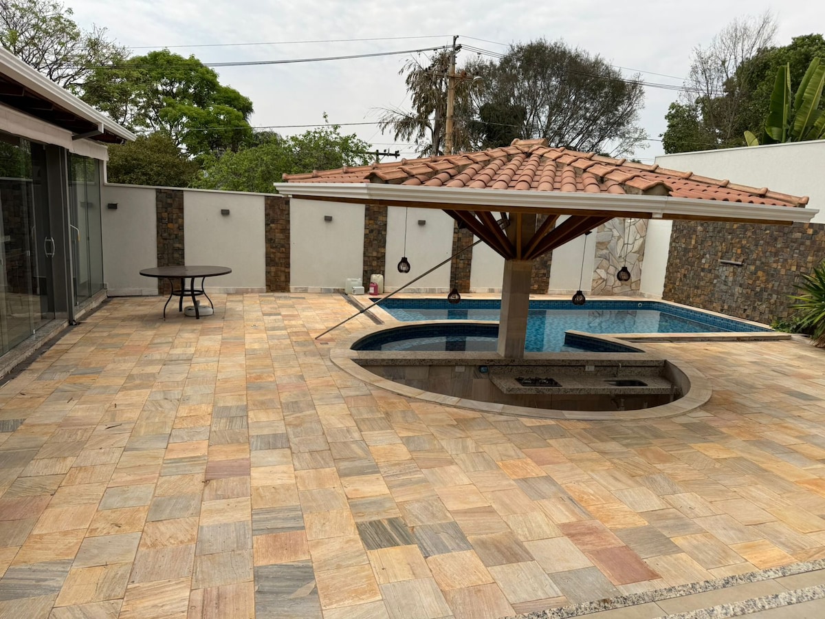Atemberaubender Blick auf den Damm Stell dir vor, du wachst mit einem üppigen Blick auf den Damm auf, genießt den Sonnenuntergang vom Pool aus und beendest den Tag mit einem eiskalten Bier auf dem Balkon. Unser Haus in der Wohnanlage Macaúbas ist der ideale Ort für Ruhe, Freizeit und unvergessliche Momente. Volles und gemütliches Haus Mit Blick auf den Damm, mit spektakulärem Sonnenuntergang Swimmingpool mit privilegierter Aussicht Gourmetbereich mit Grill und Naja-Bierzapfanlage 3 Schlafzimmer (1 Ensuite) + 2 Gästebäder.