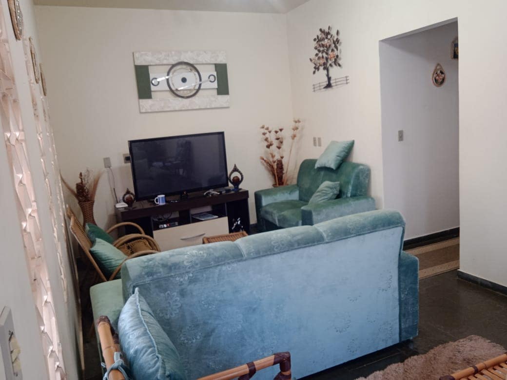 Das Haus in Rifaina-SP (Macaúbas Condominium) bietet Platz für bis zu 10 Personen, mit 3 Schlafzimmern, 4 Doppelbetten und 2 Einzelbetten, 3 Badezimmern, von denen 1 ein eigenes ist. Sala: (Sofa und TV). Küche: 1 Gefrierschrank und 1 Kühlschrank. Balkon: 01 Herd, 2 Holztische, Grillplatz mit privilegiertem Blick auf den Damm und den Sonnenuntergang. WLAN. Lokal mit direktem Zugang zum Damm, Unterkunft 1 km vom Stadtmarkt entfernt. Gemeinschaftsbereich mit Deck für Boote. Familienstandort: Keine Partys oder Veranstaltungen. Die Unterkunft ist haustierfreundlich.