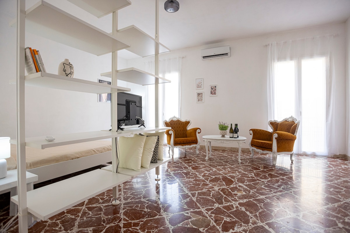 Sie sind herzlich willkommen in meiner kleinen Mansarde, hell und gut eingerichtet. Studio im zweiten Stock ohne Aufzug, kürzlich renoviert, bestehend aus einem einzigen Raum mit Küche mit Geräten, einziehbares Doppelbett, Sofa, Klimaanlage, TV und Bad mit Dusche. Kostenloser Privatparkplatz. Nur wenige Gehminuten entfernt befindet sich die Seilbahn, die Erice, den Strand und das historische Zentrum erreicht, die nur wenige Kilometer entfernt sind. Erreichbare Ziele: San Vito lo Capo, Scopello, Segesta, Marsala und Castellammare.