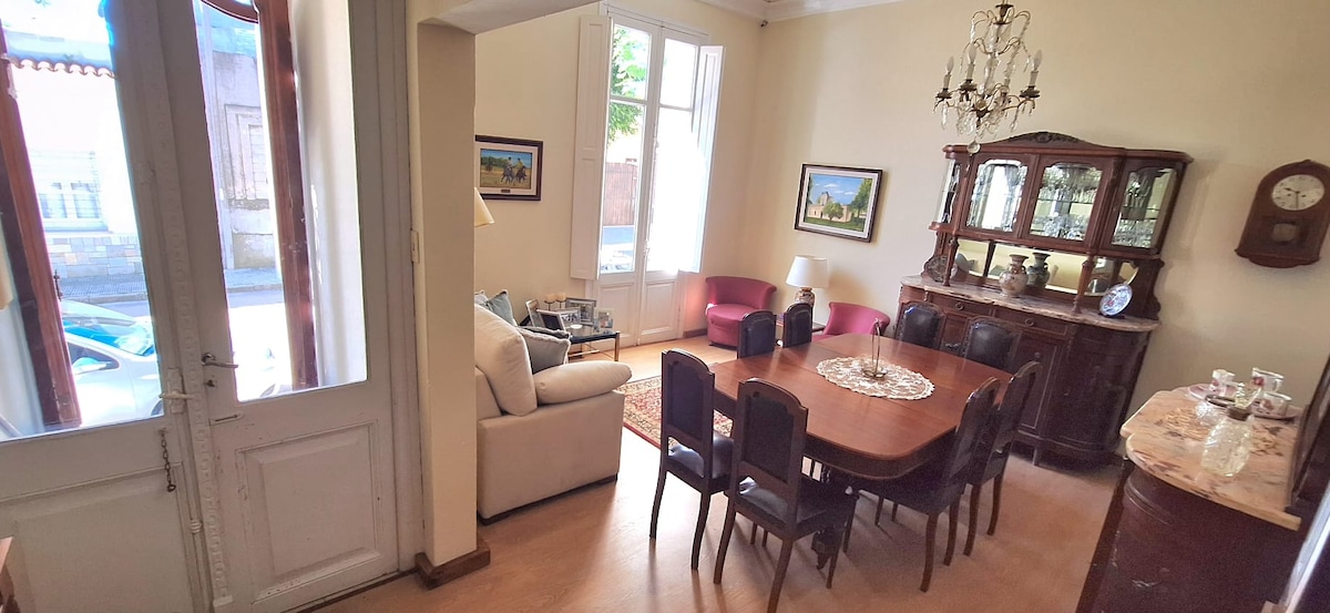 Einzigartiger Kurzurlaub, um eine ruhige Umgebung in der malerischsten Gegend der Stadt zu genießen. Das Kolonialhaus befindet sich im historischen Viertel von Fray Bentos, 50 Meter von der Plaza Constitución entfernt Das Erdgeschoss verfügt über 2 angrenzende Schlafzimmer, eine Wohnküche mit einem Holzofen, ein Wohnzimmer mit einem TV und einen Terrassenausgang sowie einen Grillrost. Im obersten Stockwerk befindet sich eine Terrasse und ein Aussichtspunkt, um die besten Sonnenuntergänge zu genießen. Wir haben Fahrräder, um durch die Stadt zu fahren.