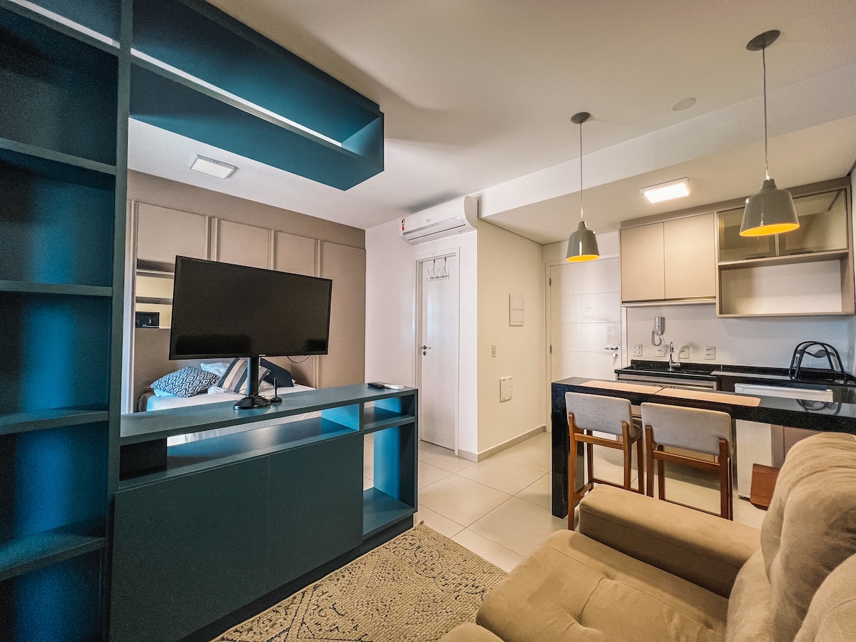 Mehr als eine Unterkunft, ein Erlebnis! NEU, modern und gemütlich! Das Hotel liegt im Süden, der besten Lage der Stadt, in der Nähe der wichtigsten Einkaufszentren, Krankenhäuser und Restaurants. Im 8. Stock, mit privilegierter Aussicht, verfügt die Wohnung über WLAN, Wohnzimmer und Schlafzimmer mit Klimaanlage, Queensize-Bett, ordnungsgemäß desinfizierte Bettwäsche/Tischwäsche/Handtücher, voll ausgestattete Küche mit Kochfeld, Haushaltsgeräten und Utensilien. Alles für Sie und Ihre Familie, damit Sie sich wie zu Hause fühlen!