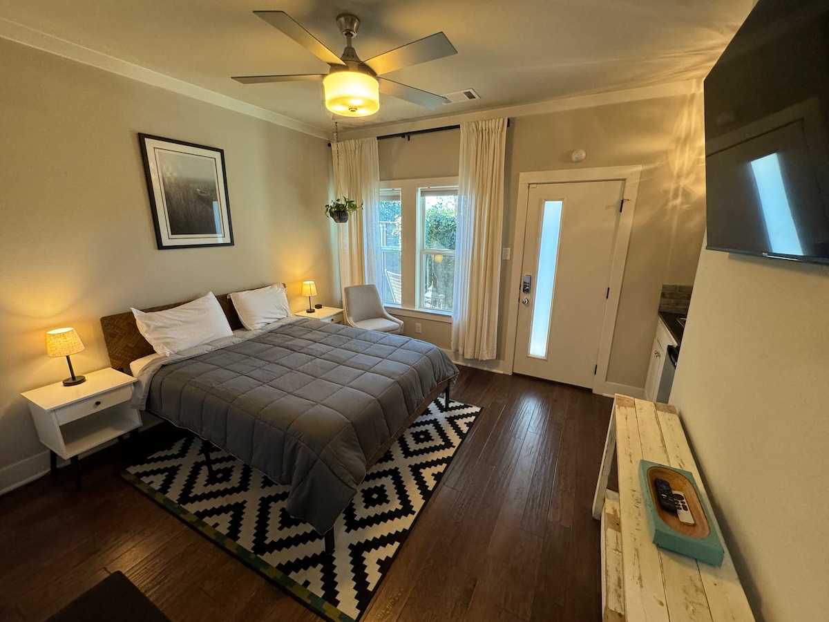 Wir befinden uns im historischen Stadtteil Fairmount, nur 10 Gehminuten von Magnolia entfernt. Die Unterkunft ist eine moderne, neu gebaute Studio-Wohnung über der Garage mit gewölbten Decken, einer voll ausgestatteten Küche, einem Essbereich, einer Terrasse, einem Unterhaltungszentrum, einem Queensize-Bett und einem Badezimmer mit ebenerdiger Dusche. Sie ist voll von Annehmlichkeiten wie einem dedizierten WLAN-Gateway, Zugang zu Streaming-Diensten, Leesa-Matratze, Premium-Kaffee und vielem mehr! Unser Ziel ist es, dass du dich während deines Aufenthalts wohl und wie zuhause fühlst!