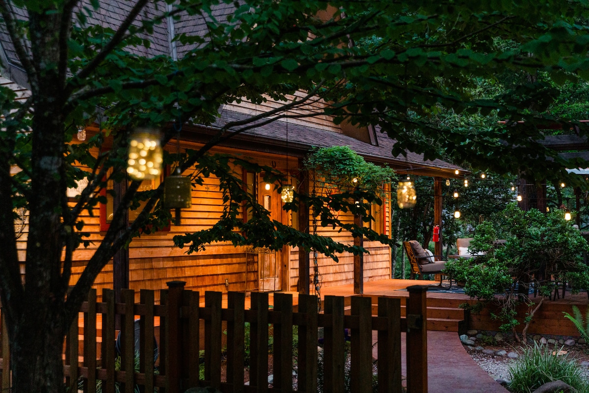 Relax and explore in a gorgeous mid century cabin nestled amongst the cedars and fir. The treehouse has big windows looking out at the forest to your private creek. It’s a lovely secluded one bedroom with a huge rock fireplace, reading nook, 100% organic cotton sheets, unscented eco friendly soap, and free internet. Take a hike down to the creek, or just open a window and let the babbling brook lull you to sleep at night. There’s nothing like watching the rain fall from your private hot tub.