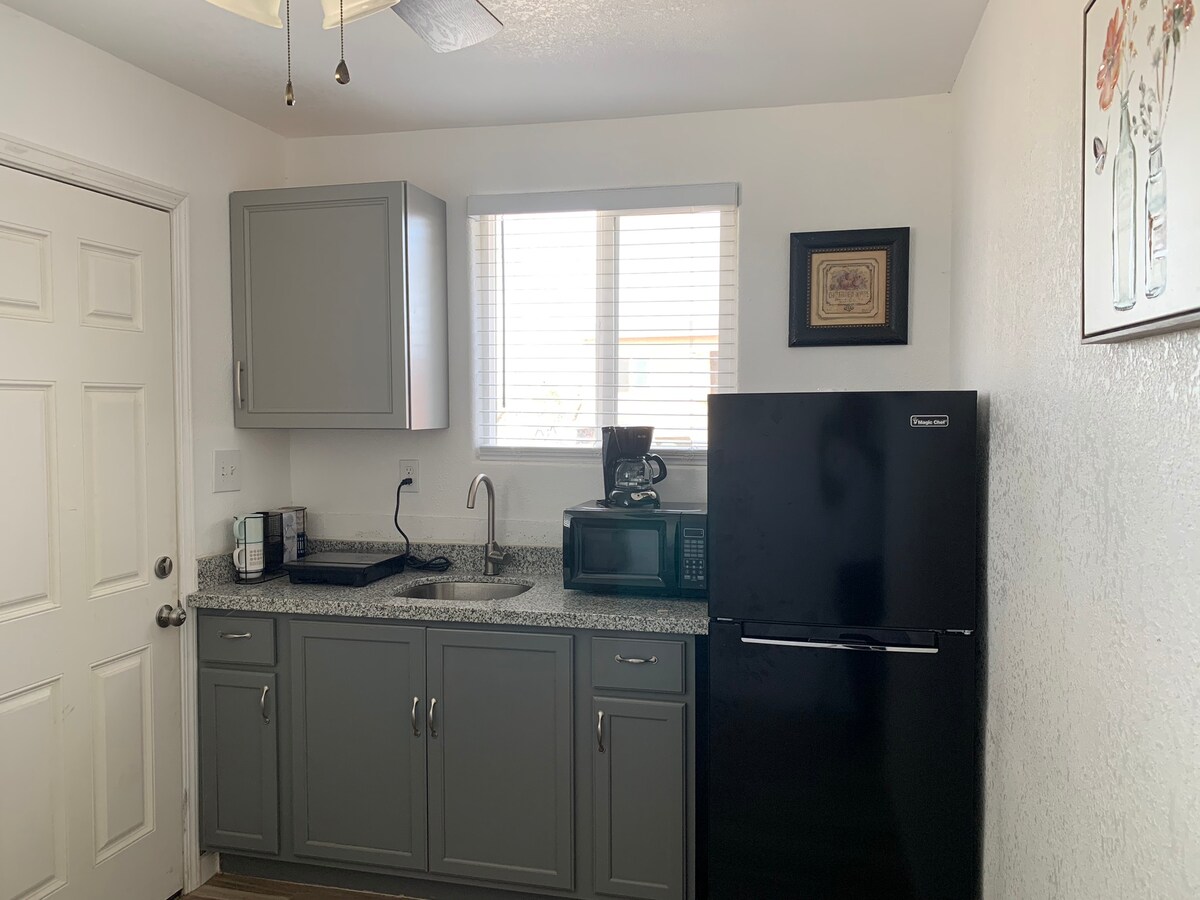 Dieses 400 Quadratmeter große Tiny House wurde für Komfort und Bequemlichkeit geschaffen. Es ist ein Studio-Layout mit einem gemeinsam genutzten Raum zum Wohnen und Schlafen, bietet aber dennoch eine voll ausgestattete Küche, ein Badezimmer (mit Badewanne), eine Waschmaschine, einen Trockner und einen eigenen Parkplatz abseits der Straße. Ein lichtdurchfluteter Raum mit gewölbten Decken, ideal für kurz- und längerfristige Aufenthalte. Es bietet modernes Designer-Dekor, einschließlich weißer U-Bahn-Fliesen und offener Regale in der voll ausgestatteten Küche, Bettwäsche mit hoher Fadenzahl und weiße Bettdecke auf einer bequemen Matratze und einige bunte spanische Fliesen im Badezimmer. Es fühlt sich an wie ein ruhiger, privater Rückzugsort, aber dennoch ist es nah genug an der Altstadt von Clovis, um alles zu Fuß zu erreichen. Komm und genieße! Du hast uneingeschränkten Zugang zu diesem Haus. Du checkst unabhängig in dieses Haus ein und aus. Aber wenn etwas benötigt wird, stehen ich oder meine Co-Gastgeber zur Verfügung. Das Haus befindet sich im charmanten, historischen Stadtzentrum, das als Old Town Clovis bekannt ist. Du kannst bequem zu nahe gelegenen Geschäften, Restaurants und Festivals schlendern. Lauf- und Wanderwege befinden sich ebenfalls in der Nähe. Große Läden und Supermärkte sind in wenigen Fahrminuten erreichbar und der Flughafen ist in 15 Minuten erreichbar. Es gibt eine gute Verbindung zum Highway 168, der dich mit Sehenswürdigkeiten wie den Yosemite- und Sequoia-Nationalparks verbindet. Dieses Haus verfügt über einen eigenen Parkplatz an der Seite des Grundstücks. Taxis stehen zur Verfügung und eine Bushaltestelle liegt nur 20 Gehminuten entfernt. Aber die Menschen fahren in der Regel, wenn sie die Gegend besuchen. Es gibt WLAN und Smart-TV. Du kannst persönliche Abonnements (Netflix, Roku, Hulu usw.) ansehen. Aber es gibt kein Kabelfernsehen. Dies ist eine Gasse, die dem Haus zugewandt ist, wo deine „Aussicht“ Garagen und Zäune sein wird. Während Parks und Wanderwege leicht zu Fuß erreichbar sind, gibt es bei diesem Haus keinen Hof oder Außenbereich (mit Ausnahme der kleinen vorderen Terrasse). Es gibt ein Haupthaus zur Straße, das durch einen Sichtschutzzaun getrennt ist. Du gelangst über die hintere Gasse hinter dem Haupthaus zu deinem Haus und hast einen eigenen Parkplatz. Wenn du mehr als ein Fahrzeug hast, musst du diese zusätzlichen Fahrzeuge auf der Straße parken.