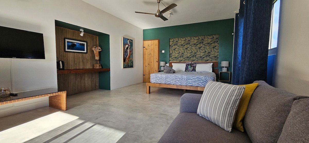 Entspanne dich in unserer Suite mit Zimtmotiv, die von der 20-fachen Superhostin Jenni gehostet wird. Super Kingsize-Himmelbett, Smart-TV mit Netflix und ein geräumiges Badezimmer mit begehbarer Dusche und freistehender Badewanne. Tritt auf deine Terrasse am Infinity-Pool mit Sonnenliegen und tropischem Blick und wache mit dem Gesang der Vögel auf. Solarbeheiztes Wasser, unbegrenztes WLAN und sichere Parkplätze sind inbegriffen. Auto empfohlen. Frühstück nicht inbegriffen.