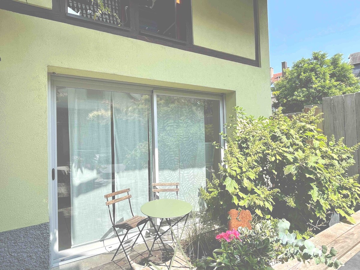 Sentez vous comme à la maison dans ce lumineux et moderne appartement T2,à la Robertsau, en rez-de-chausee, entouré de jardin, à 10 min de centre historique de Strasbourg. Il se situe très proche des Institutions UE et Waken (400 m). Il accueille 4 personnes, un lit dans la chambre, et un canapé lit dans le salon, dressings, cuisine américaine équipée. Plusieurs lignes de bus pour ce rendre au centre ville, C6, 72,30 et le tram E. Stationnement gratuit DANS LA RUE, espace sécurisé vélo.