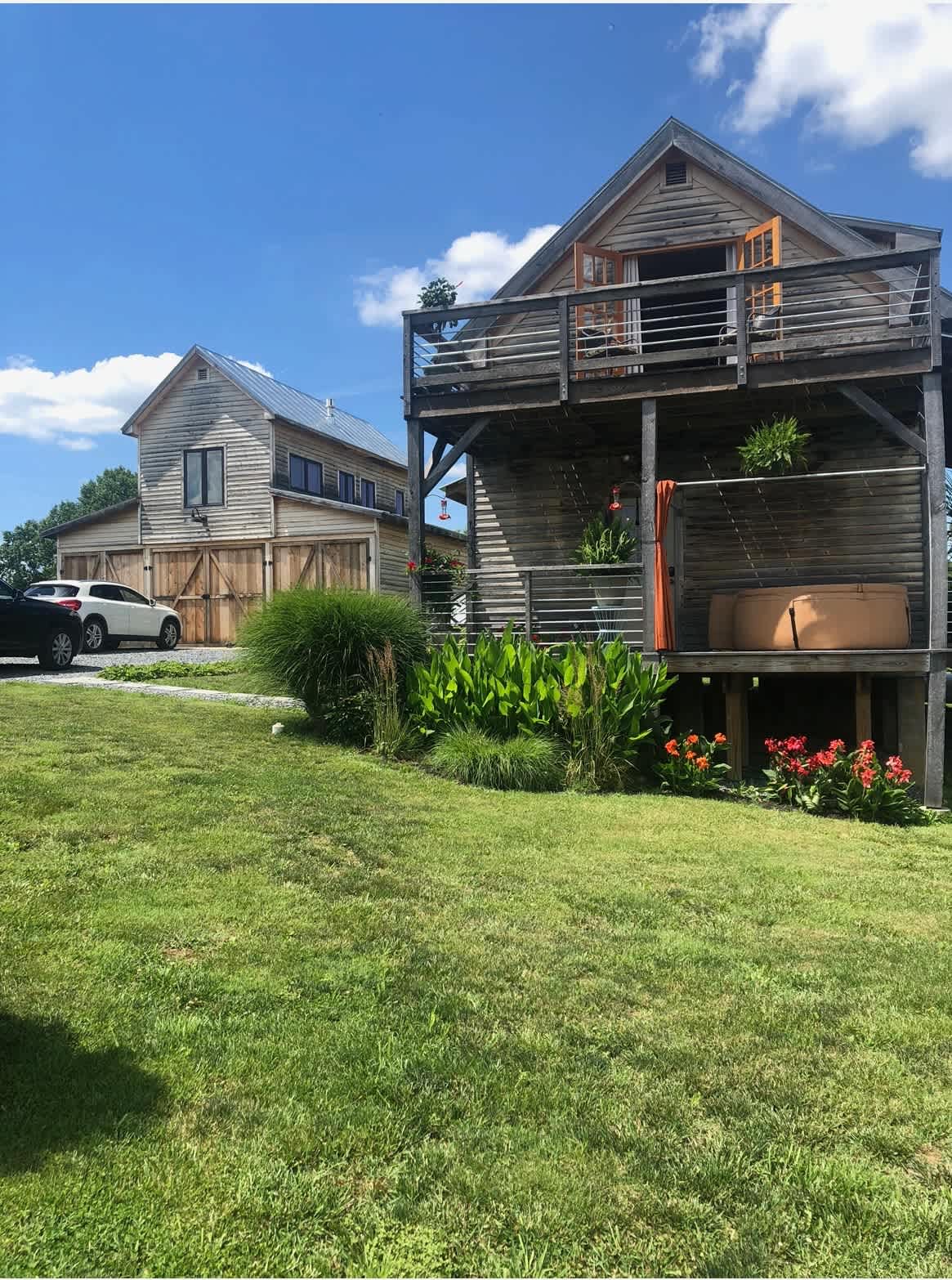 Amazing contemporary home features a stunning mountain view from the hot tub patio and a spacious open layout filled with vintage furniture. This piece of paradise located on 6 private acres is the perfect weekend mountain escape! 15 minutes to downtown Lexington, W&L, VMI. 10 minutes to the Virginia Horse Center. Minutes from Ecco Adesso Vineyard and Rockbridge Winery. Sunrise Ridge is a pet-friendly property, we warmly welcome your pets with a pet fee of $150.