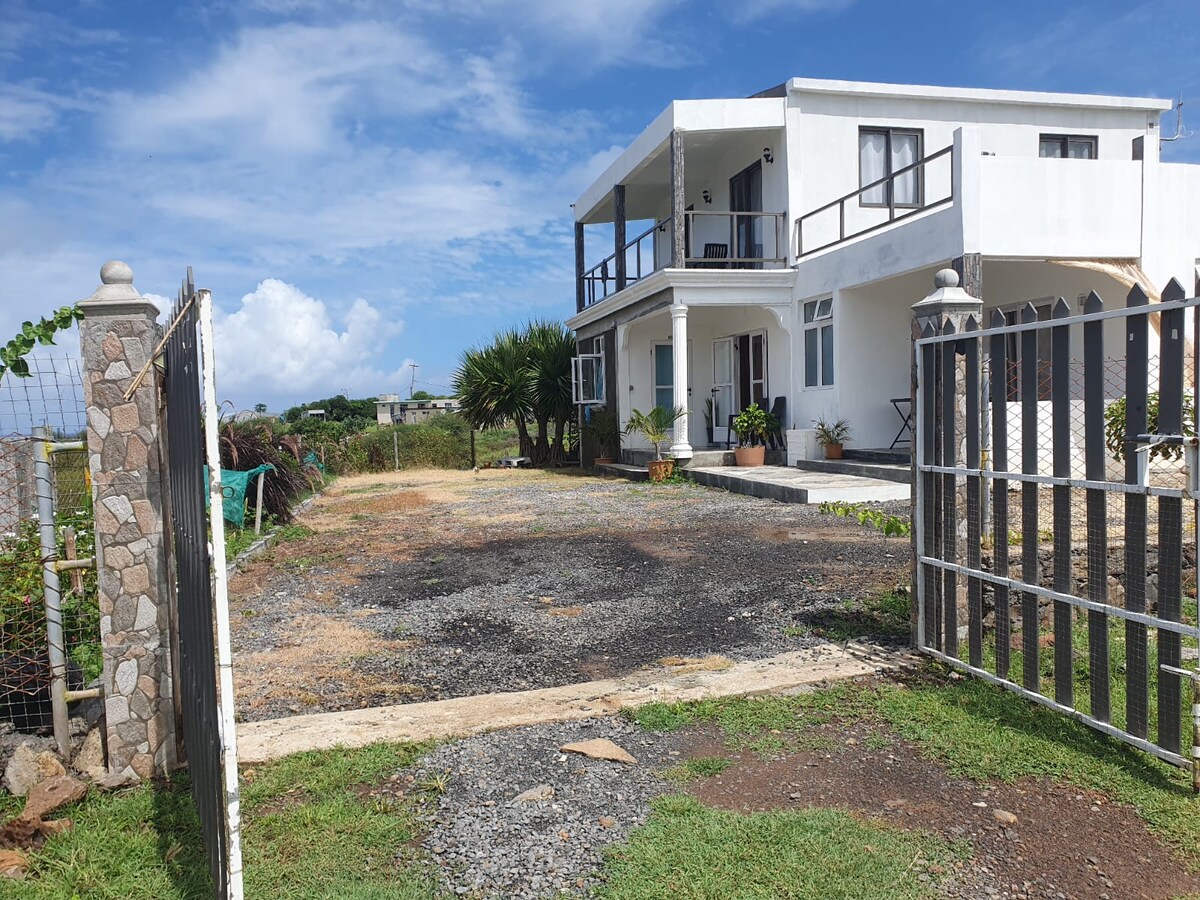 Ein gemütlicher, einladender Raum erwartet dich. Privatzimmer mit Badezimmer und Balkon mit einer schönen Aussicht auf Oyster Bay, perfekt zum Entspannen. Du teilst dir die Terrasse – einen warmen Raum, in dem du dich wie zuhause fühlst. Die Küche ist privat und wird nur vom Gastgeber genutzt. Eine Kaffeeecke mit Wasserkocher befindet sich im Schlafzimmer für deine Pausen und ruhigen Momente. Frühstück und Abendessen können auf Anfrage zubereitet werden. Das Haus ist nur 10 Minuten mit dem Roller oder Auto von Port Mathurin entfernt, ideal, um die Gegend zu erkunden.