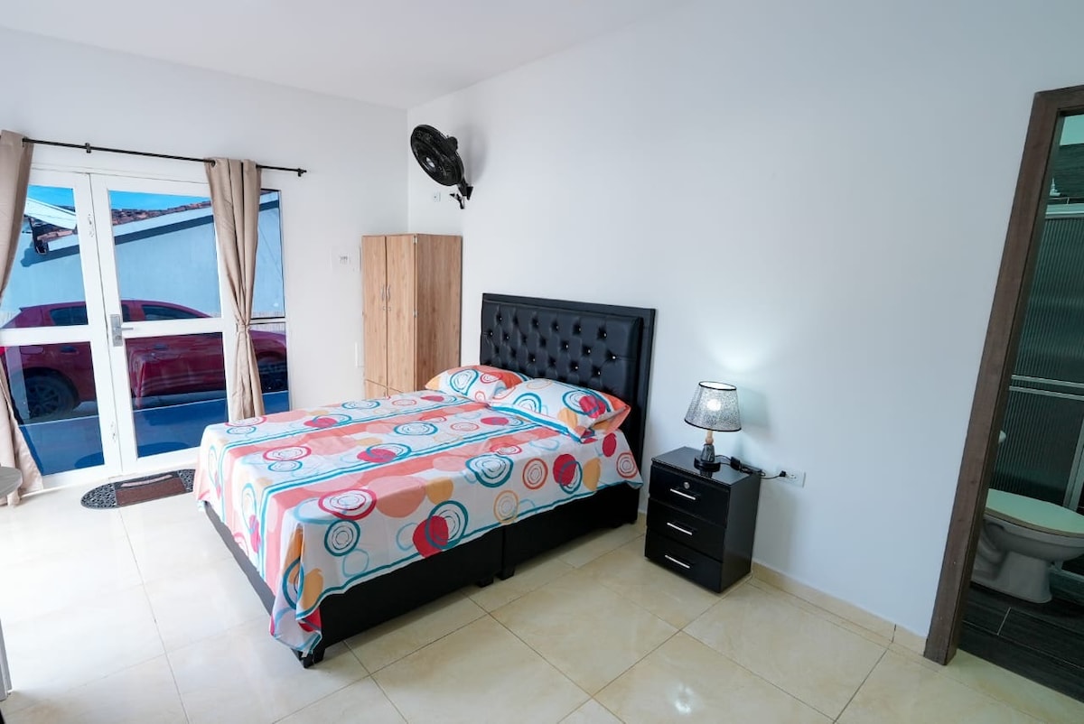 Diese charmante Wohnung verfügt über 2 Schlafzimmer. Eines mit 1 Doppelbett und das andere mit zwei Einzelbetten und 1 Nische. Jedes mit TV und Ventilator. Sie verfügt auch über einen Balkon, ein Wohnzimmer mit Annehmlichkeiten, eine voll ausgestattete Küche, 2 moderne Badezimmer und eine Waschküche mit Waschmaschine, WLAN und Warmwasser. Außerdem ist sie sehr gut im zentralen Bereich von Zarzal in der Nähe des Iguana-Themenparks, des Rathauses, der Kirche und des Handels gelegen. Buchen Sie jetzt und entdecken Sie die Schönheit unserer Stadt.