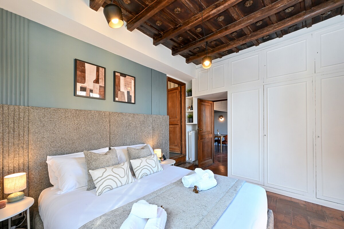 APT 10A ist ein einzigartiges und helles Loft im Herzen des historischen Zentrums von Rom, nur wenige Schritte vom Campo de' Fiori, der Piazza Navona, dem Pantheon, Trastevere und dem jüdischen Viertel entfernt. Die Wohnung befindet sich im sechsten Stock (mit Aufzug) eines eleganten historischen Gebäudes. Ihr herausragendes Merkmal ist die natürliche Helligkeit, dank vier großer französischer Fenster, die sich auf eine private Terrasse mit herrlichem Blick auf den Fluss öffnen. Perfekt, um die authentische römische Atmosphäre zu genießen!