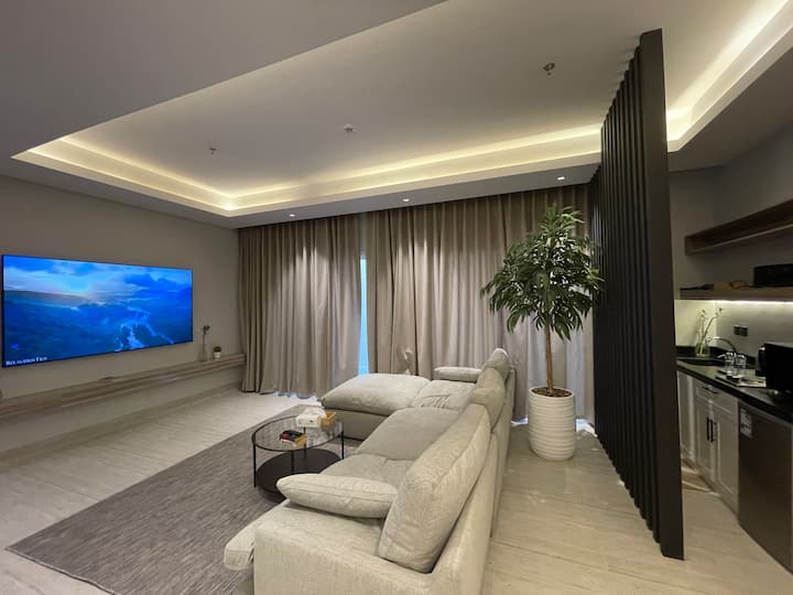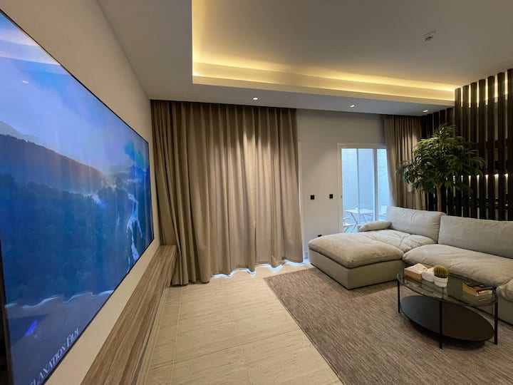 W002|Gemütliches großes Studio. 90-Zoll-Bildschirm (Pool und Fitnessraum)