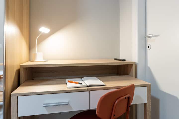 Ein Zimmer mit WLAN, das sich gut zum Arbeiten eignet.