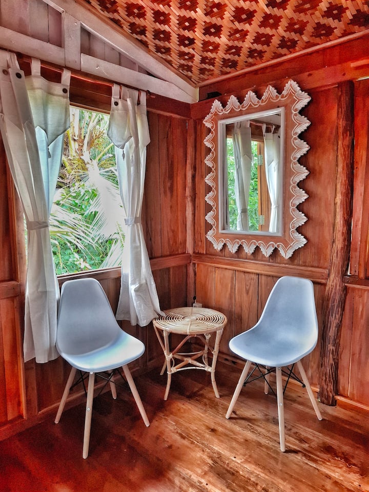 Eingebettet zwischen Lagune und Wald verkörpert es den austronesischen Geist: im Einklang mit der Natur zu leben, den Alltag in Einfachheit zu teilen und jedem einen einzigartigen Raum zu bieten, in dem man sich treffen kann. Jedes Zimmer wurde als lebendiges Kunstwerk gestaltet, geformt aus Treibholz, geflochtenem Bambus, Vulkangestein und lokalem Know-how.