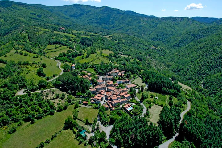 Das stattliche, geräumige Landhaus liegt in Pratovecchio, im Casalino (ca. 30 Einwohner, 4 km vom Zentrum entfernt). Die beeindruckende Villa ist von einem privaten Garten mit hohen Bäumen umgeben, der an den Nationalpark Foreste Casentinesi angrenzt.