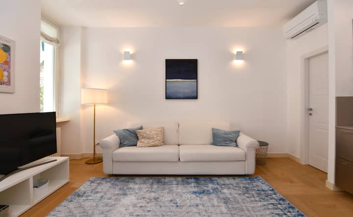 Die Wohnung wurde vor kurzem komplett und fein renoviert und ist möbliert und mit allem ausgestattet, was Sie brauchen, um den Aufenthalt unserer Gäste so angenehm und angenehm wie möglich zu gestalten. Das Anwesen befindet sich im ersten Stock und besteht aus einem Eingangsbereich, einem großen und hellen Wohnbereich mit Sofa, der bei Bedarf zu einem bequemen Schlafsofa, einem Smart-TV mit Netflix-Konto, einem Esstisch und einer schönen offenen Küche mit Türen und Stahlschubladen werden kann. Die Küche besteht aus einem Kühlschrank, einer Spülmaschine, einem Induktionskochfeld, einer Mikrowelle, einer Nespresso-Kaffeemaschine und einer Waschmaschine. Vom Wohnbereich aus gelangt man direkt auf die große Terrasse mit ausgezeichneter Lage, ideal, um an Sommerabenden ein Frühstück, einen Aperitif oder ein Abendessen zu genießen. Die Terrasse ist mit einem elektrischen Markise mit Fernbedienung ausgestattet. Abgerundet wird die Wohnung durch ein Schlafzimmer mit einem komfortablen Doppelbett, einem geräumigen Kleiderschrank mit Schiebetüren und einem Smart-TV an der Wand sowie einem modernen Badezimmer mit großer Dusche. Die Wohnung ist schließlich mit einer Klimaanlage sowohl im Wohnbereich als auch im Schlafzimmer und drahtloses Highspeed-Netzwerk (Glasfaser) im ganzen Haus ausgestattet.