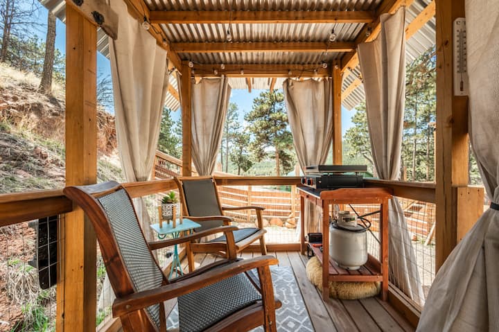 Glamping-Retreat | Feuerstelle, BBQ & Pikes Peak-Blick