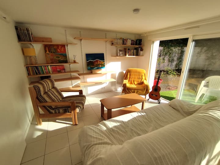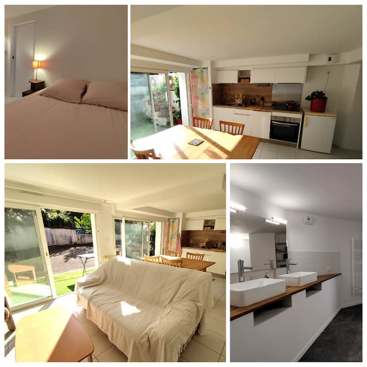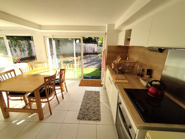 Wir waren von diesem Haus wegen seiner Umgebung begeistert, sowohl in der Nähe des Meeres als auch des Sees, als auch in einer ruhigen und beruhigenden Umgebung, aber auch dank der geräumigen Innenräume, die wir modernisiert haben, und einem großen Garten mit Blick auf den Wald.