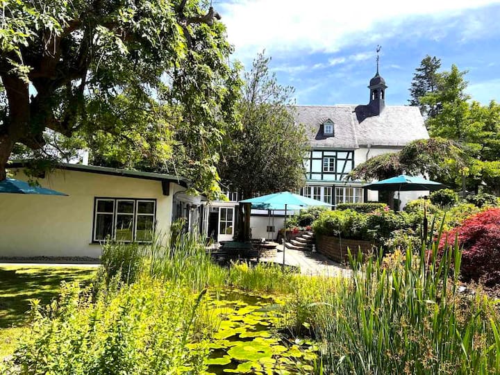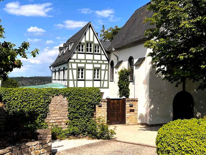Unsere traumhafte, kinderfreundliche Ferienwohnung "Farmhouse" befindet sich im hinteren Seitengebäude des historischen Alten Forsthaus Boppard auf dem Kreuzberg, einem verwunschen gelegenen Ort oberhalb der malerischen Stadt Boppard. Von Ihrer Ferienwohnung am Rande unseres Gartenparks haben Sie direkten Zugang zu 2 ebenerdigen, teilweise überdachten Terrassen vor und hinter dem Haus und einem geschützten Sitzplatz für 2 Personen.