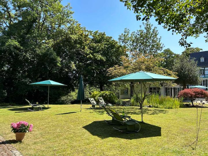 In den warmen Jahreszeiten lädt unser Gartenpark mit verschiedenen Gartenterrassen, einer großzügigen Liegewiese mit Gartenstühlen, Sonnenliegen und Sonnenschirmen sowie einem idyllischen Teich zum Entspannen ein. Nutzen Sie Ihre gemütlichen Terrassen mit Grill für laue Sommerabende, um den Abend in Ruhe bei Sonnenuntergang zu erleben und alle Sorgen hinter sich zu lassen.