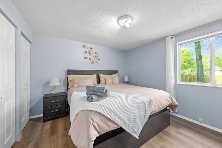 Entfliehe unserem stilvollen Airbnb mit 2 Schlafzimmern in Charlotte, perfekt gelegen in der Nähe des Flughafens und der Outlet-Malls. Genieße den Komfort von zwei Queensize-Betten und einem Kingsize-Bett in einem wunderschön renovierten Raum. Entspanne dich im weichen Wohnzimmer oder koche einen Sturm in der offenen Küche. Bleib mit schnellem WLAN in Verbindung und nutze die Vorteile der hauseigenen Waschmaschine und des Trockners. Entspanne dich im Whirlpool oder versammle dich an der Feuerstelle für einen gemütlichen Abend. Dein perfekter Kurzurlaub in Charlotte wartet! Haustierfreundlich für 80 $ pro Haustier.