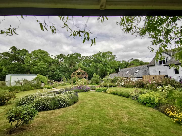 Schöne vier Schlafzimmer ( alle Betten können Kingsize oder Einzelbetten sein) fünf Badezimmer. 15.C-Haus direkt am Fluss in West Devon. Atemberaubende Landschaft und Spaziergänge vom Haus aus, große formale Gärten und Obstgarten mit Gehwegen zum Wasser, ideal für Picknicks und Spiele. Hunde sind herzlich willkommen und werden den Platz in den Gärten, Obstgärten, Feldern und Wasser lieben. Viele Familienaktivitäten, N.T., offene Gärten in der Gegend. Strände sind in allen Richtungen nur 35/55 Minuten entfernt. Ideale Gegend, um Devon zu erkunden. EV-Ladegerät.