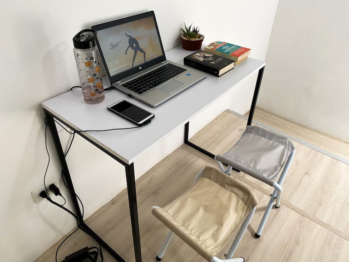 Ein Zimmer mit WLAN, das sich gut zum Arbeiten eignet.