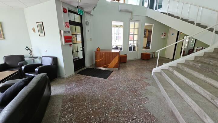 Du kannst den Check-in mit Angestellten im Gebäude durchführen.