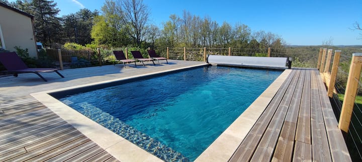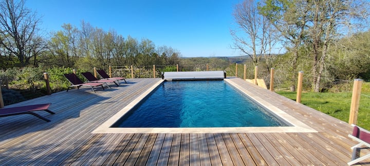 Am Ende eines kleinen Feldweges gelegen, bietet es absolute Ruhe und einen ungehinderten Blick auf das Tal vom beheizten Swimmingpool aus. Nach dem Besuch der berühmten Sehenswürdigkeiten der Region wie Domme und Sarlat wirst du es zu schätzen wissen, die Ruhe und Gelassenheit des Ortes zu finden. Der beheizte Pool und sein Panorama der umliegenden Natur versprechen unvergessliche Momente der Entspannung.