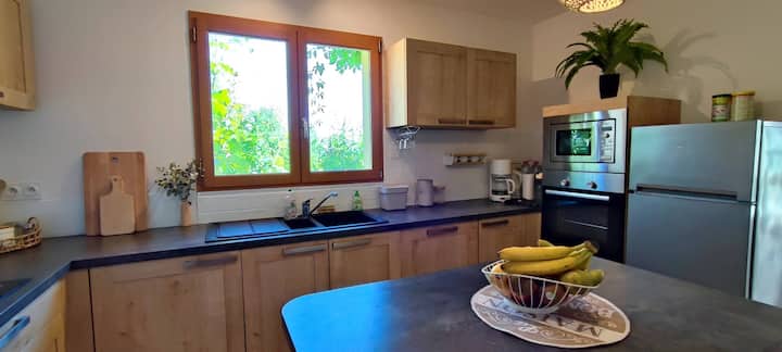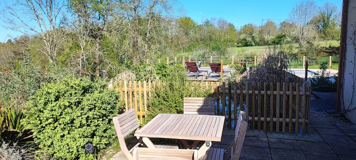 Der Garten, ein wahrer Schatz, wird dich mit seinem privaten Pool und spektakulärer Aussicht verführen. Genieße die Liegestühle, um dich in der Sonne zu entspannen, während Kinder auf der Schaukel spielen oder die Fische im Becken beobachten können. Der nahe gelegene Wald bietet auch die Möglichkeit, sich wieder mit der Natur zu verbinden... halte die Augen offen, die lokale Tierwelt könnte dich überraschen!