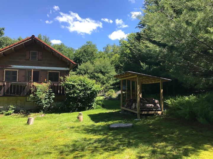 Kleine, aber sehr charmante Blockhütte an einer 1,6 km langen unbefestigten Straße im Wald, in den Hügeln der Catskills, auf 20 Hektar mit nur 3 weiteren Hütten auf dieser 1 Meile . Die unbefestigte Straße führt weiter und wird mehr als 3 Meilen zu Land. Dies befindet sich in der bescheidenen, aber natürlich schönen Stadt Claryville mit atemberaubendem Blick auf die umliegenden Catskill Mountains und den kristallklaren Neversink River, der durch das Tal eilt! Wie du sehen kannst, gibt es viele andere Hütten im Catskill Park zu mieten......wir wollten nur unsere Hütte rustikaler halten und die Natur spüren...sonst fühlt es sich an wie dein Rücken in der Stadt. Spüre ein wenig Einfachheit auf dem Land.
