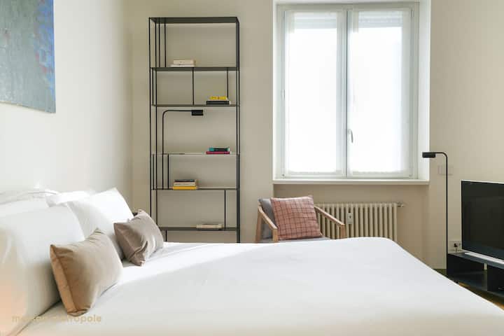 Im Herzen der lebhaften Gegend der Navigli gelegen, ermöglicht die Wohnung, voll in das prickelnde Mailänder Leben einzutauchen und gleichzeitig große Räume mit viel Tageslicht zu genießen.