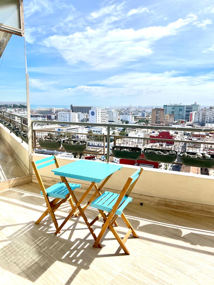 Terrasse & Blick auf den Hafen von Casablanca