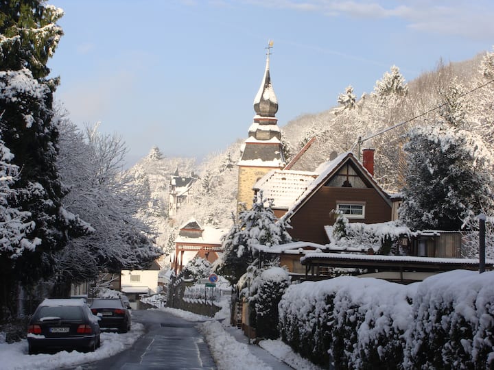 Wir haben uns ein schönes Haus in einem Bergdorf im Taunus gebaut mit viel Platz für Gäste, die wir gerne beherbergen. Die Lage ist perfekt: Mit dem Auto (empfohlen) sind es nur 30-40 Minuten zum Flughafen oder nach Frankfurt und Wiesbaden. Busverbindungen gibt es nach Königstein, Kelkheim und Eppstein.