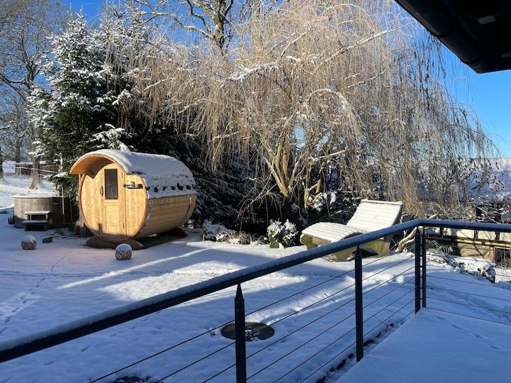 Entspanne dich mit dieser Ausstattung: Sauna und Jacuzzi.