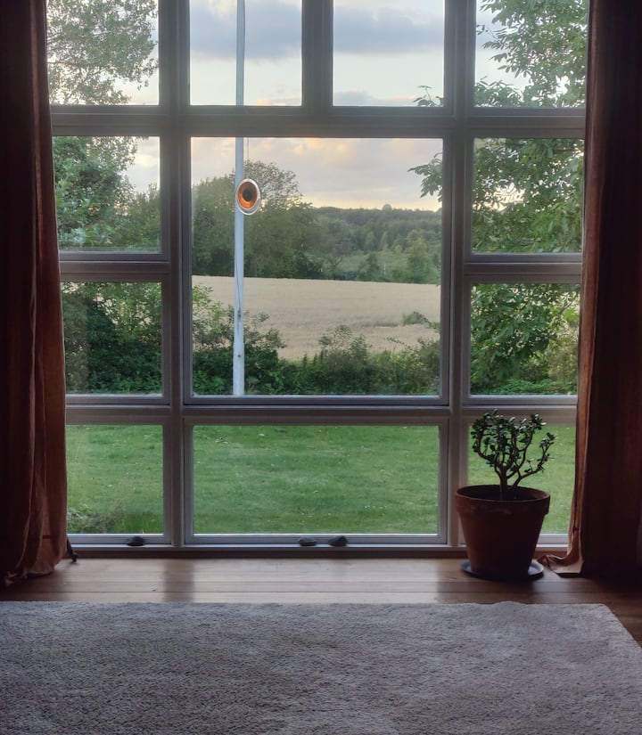 Mein Name ist Sara Gade, ich bin Künstlerin und lebe mit meinen beiden Kindern zusammen. Lukas und Luna Lee. Wir wohnen in einer alten Schule aus dem Jahr 1903 in einem kleinen Dorf im Süden von Sealand. Wir sind umgeben von Feldern, Wald und dem Ufer. Wir lieben die Natur, die Unterkunft und die sternenklaren Nächte.