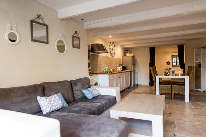 60 m2 ist komplett renoviert und verbindet Modernität und Komfort mit dem Charme von Stein und Balken.