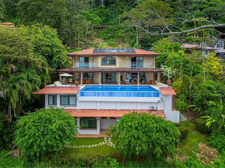 Villa Pacifica ist eine private und nachhaltige Ferienunterkunft, die sich nur 200 Meter vom Strand entfernt in einer Dschungelumgebung befindet. Die Villa ist komplett solarbetrieben und bietet von allen vier Ebenen aus einen atemberaubenden Blick auf den Pazifik. Gäste können im großen Infinity-Pool schwimmen oder sich auf der geräumigen überdachten Terrasse oder in der Sonne entspannen, während sie die westlichen Ausblicke genießen. Die Villa verfügt auch über einen eingebauten Grill, ein Kochfeld und ein Waschbecken, in dem Gäste draußen kochen und die atemberaubenden Sonnenuntergänge und Gewitter genießen können. Egal, ob du dich in einem der Zimmer der Villa entspannst oder dem Klang der Brandung lauschst, die Gäste haben einen luxuriösen und unvergesslichen Aufenthalt in der Villa Pacifica.