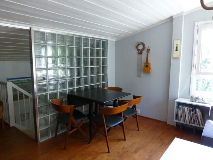 Ich bin Architekt und lebe in einer schönen Wohnung aus dem Jahr 1982 ganz in der Nähe des Skulpturenparks Vigeland. Apartment verfügt über 3 Ebenen, die auf der 4. Ebene stehen. Die erste Etage verfügt über ein Wohnzimmer und eine Küche mit Blick auf den Oslofjord und den Holmenkollen.
