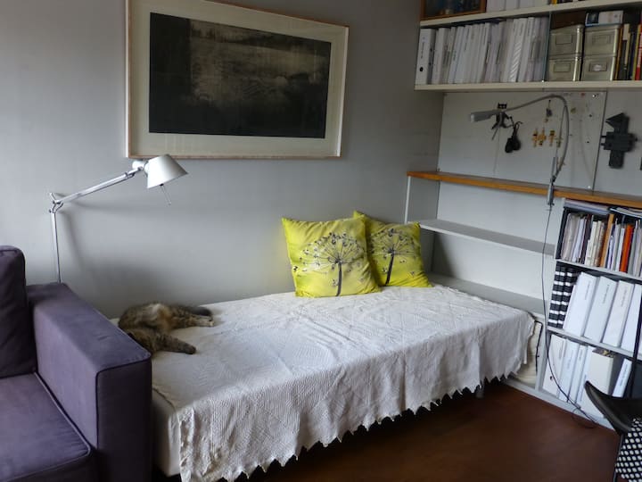 Die zweite Etage verfügt über 3 Schlafzimmer. Es gibt auch 2 Badezimmer. Eine für mich und eine für Gäste. Die Katze Coetzee ist immer zu Hause, wenn sie nicht im Park ist und die Maus versteckt. Die dritte Levei ist ein Angriff. 20 m ² mit einer sehr schönen Aussicht - ein Doppelbett und ein Einzelbett. Es könnte auch möglich sein, 2 Einzelzimmer im zweiten Stock zu mieten.